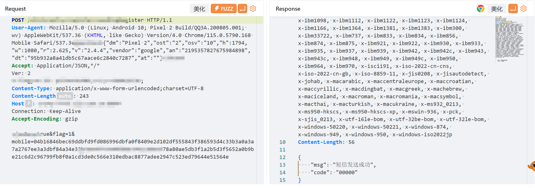在一次测试某个银行的一个安卓APP的时候,设置代理,绕过常见的抓包限制后,发现使用BurpSuite能抓到APP关键业务的请求,但是服务端接受到请求后无法正确响应,具体表现就是在Burp中的Response窗口没有响应数据返回。